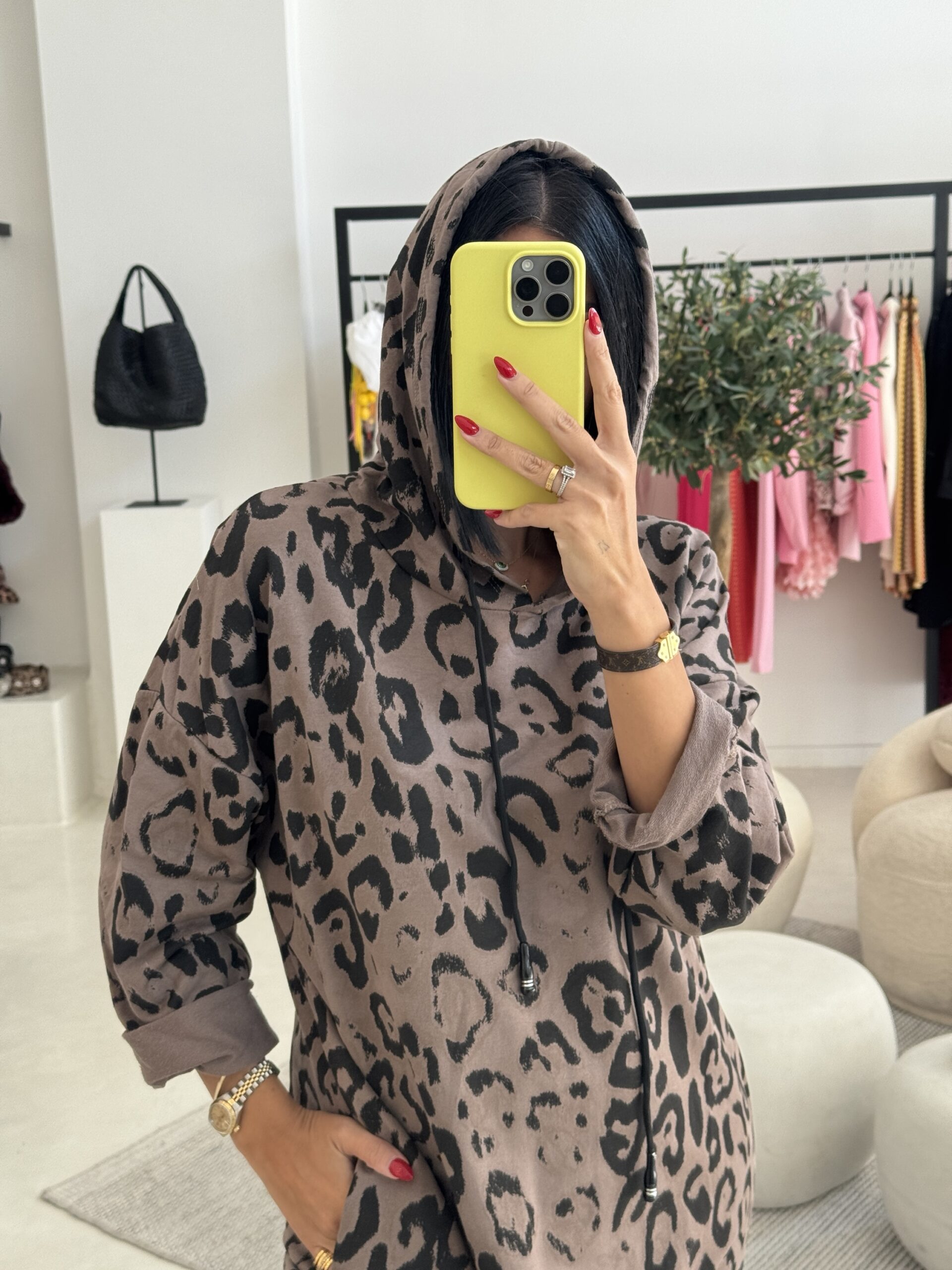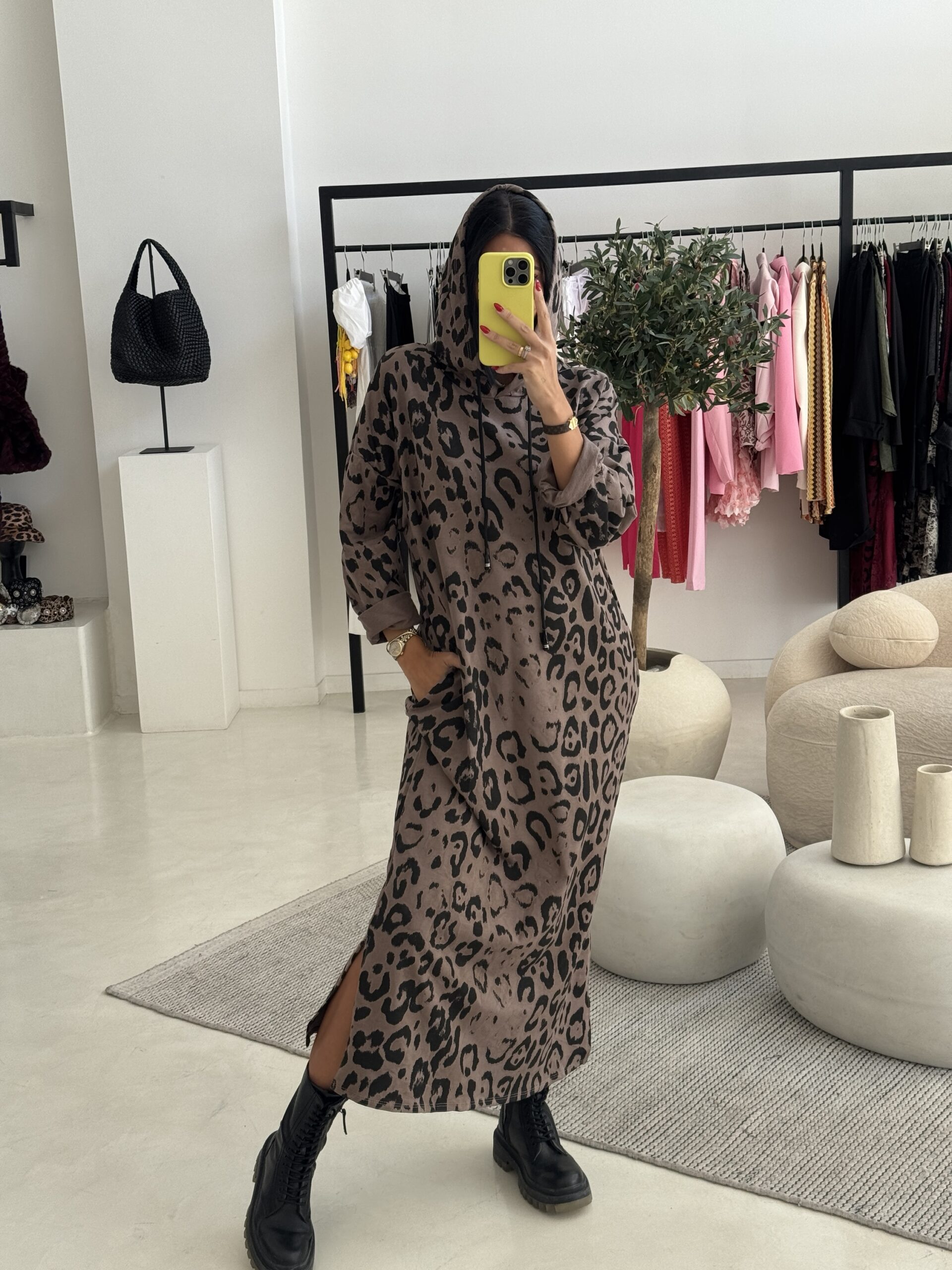 ΦΟΡΕΜΑ ANIMAL PRINT , ΜΑΚΡΥ ΜΕ ΚΟΥΚΟΥΛΑ, ΤΣΕΠΕΣ, ΚΑΙ ΜΑΝΙΚΙ 3/4, ΣΕ ΙΣΙΑ ΓΡΑΜΜΗ ΚΑΛΥΠΤΕΙ ΣΤΗΘΟΣ ΕΩΣ 140CM ΚΑΙ ΠΕΡΙΦΕΡΕΙΑ ΕΩΣ 120CM COTTON