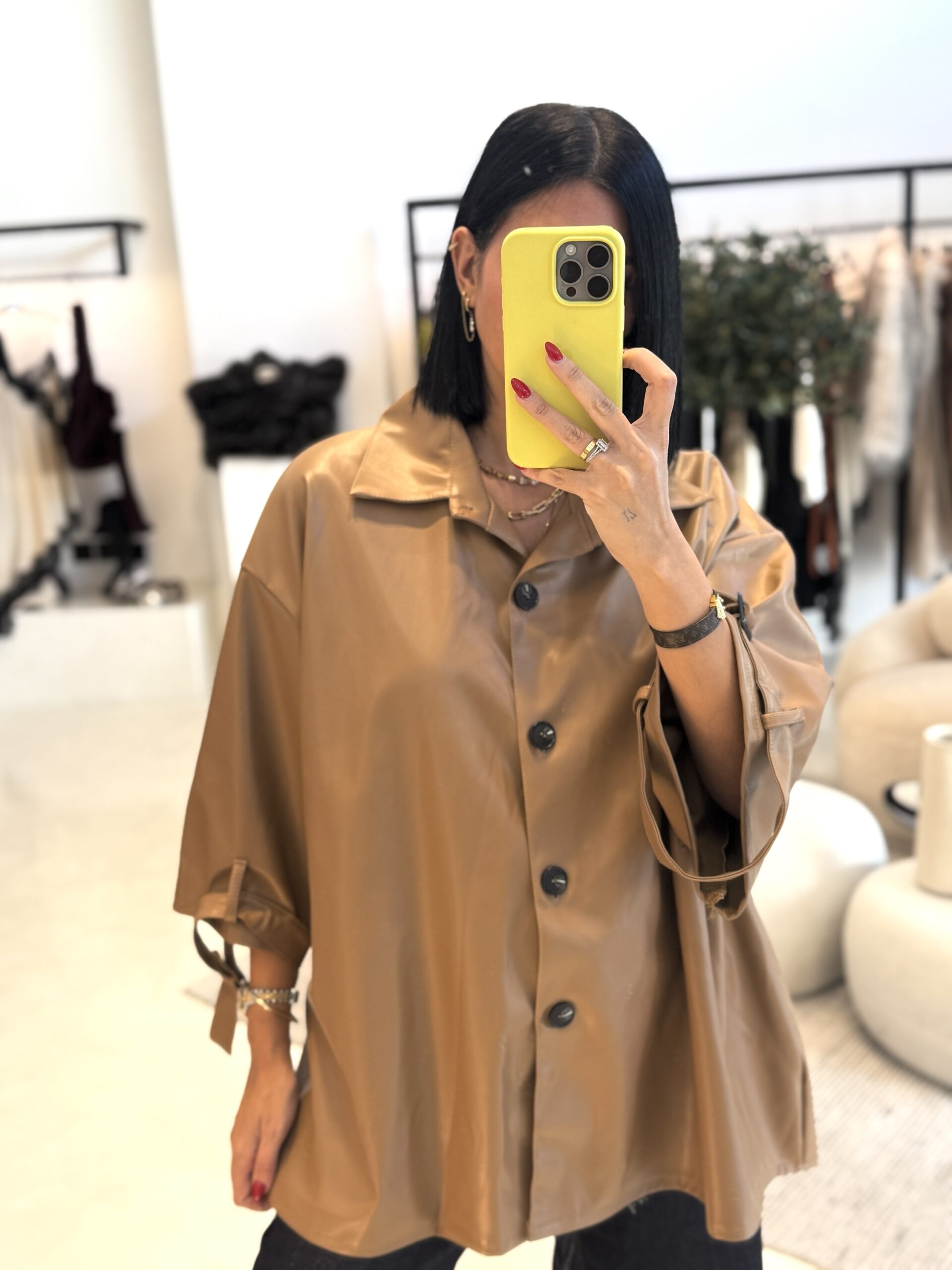 ΤΖΑΚΕΤ ECO LEATHER ΣΕ OVERSIZED ΓΡΑΜΜΗ, ΜΑΝΙΚΙΑ 34. ΚΑΛΥΠΤΕΙ ΣΤΗΘΟΣ ΕΩΣ 160CM. POLYESTER.