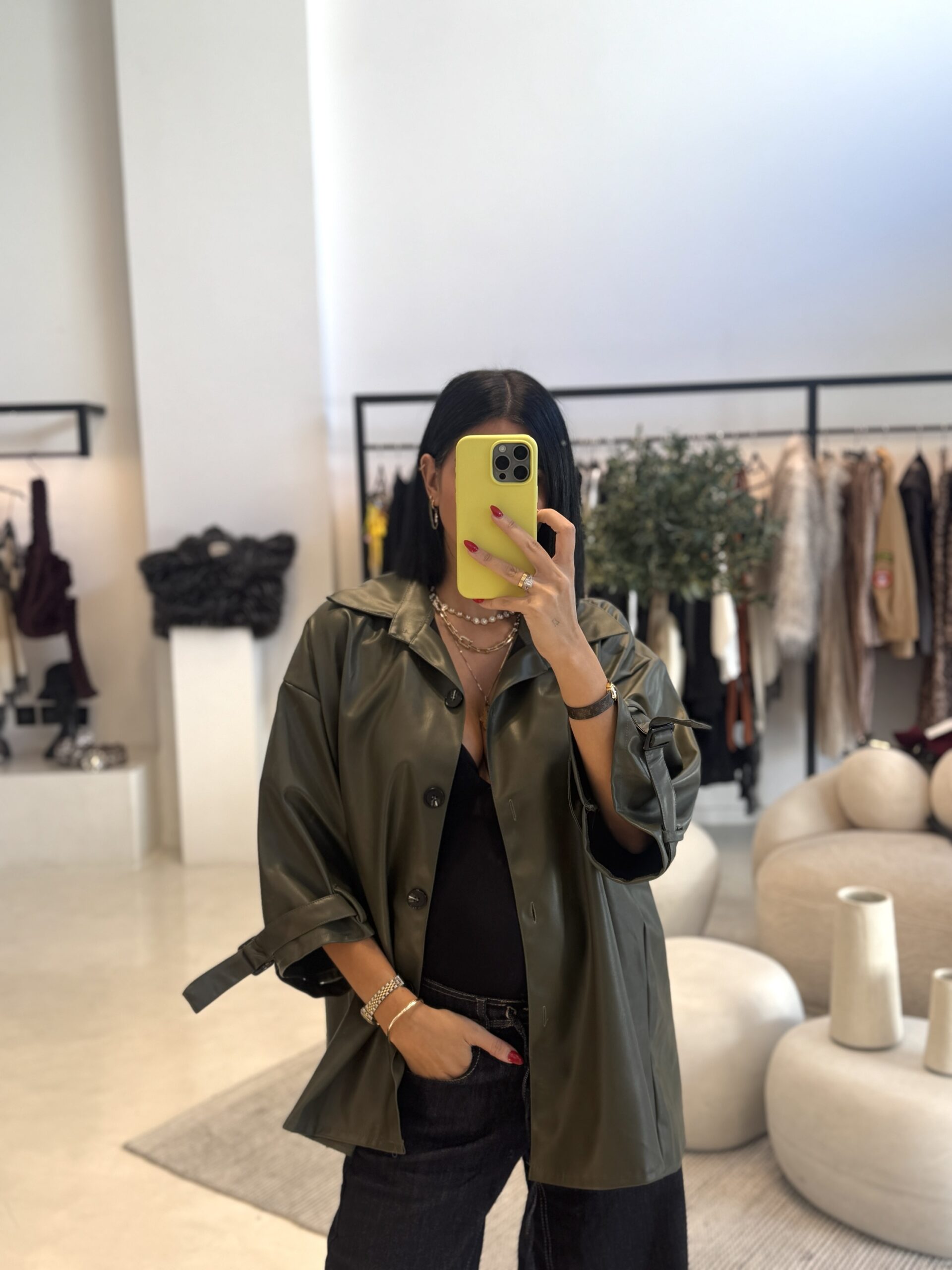 ΤΖΑΚΕΤ ECO LEATHER ΣΕ OVERSIZED ΓΡΑΜΜΗ, ΜΑΝΙΚΙΑ 34. ΚΑΛΥΠΤΕΙ ΣΤΗΘΟΣ ΕΩΣ 160CM. POLYESTER.