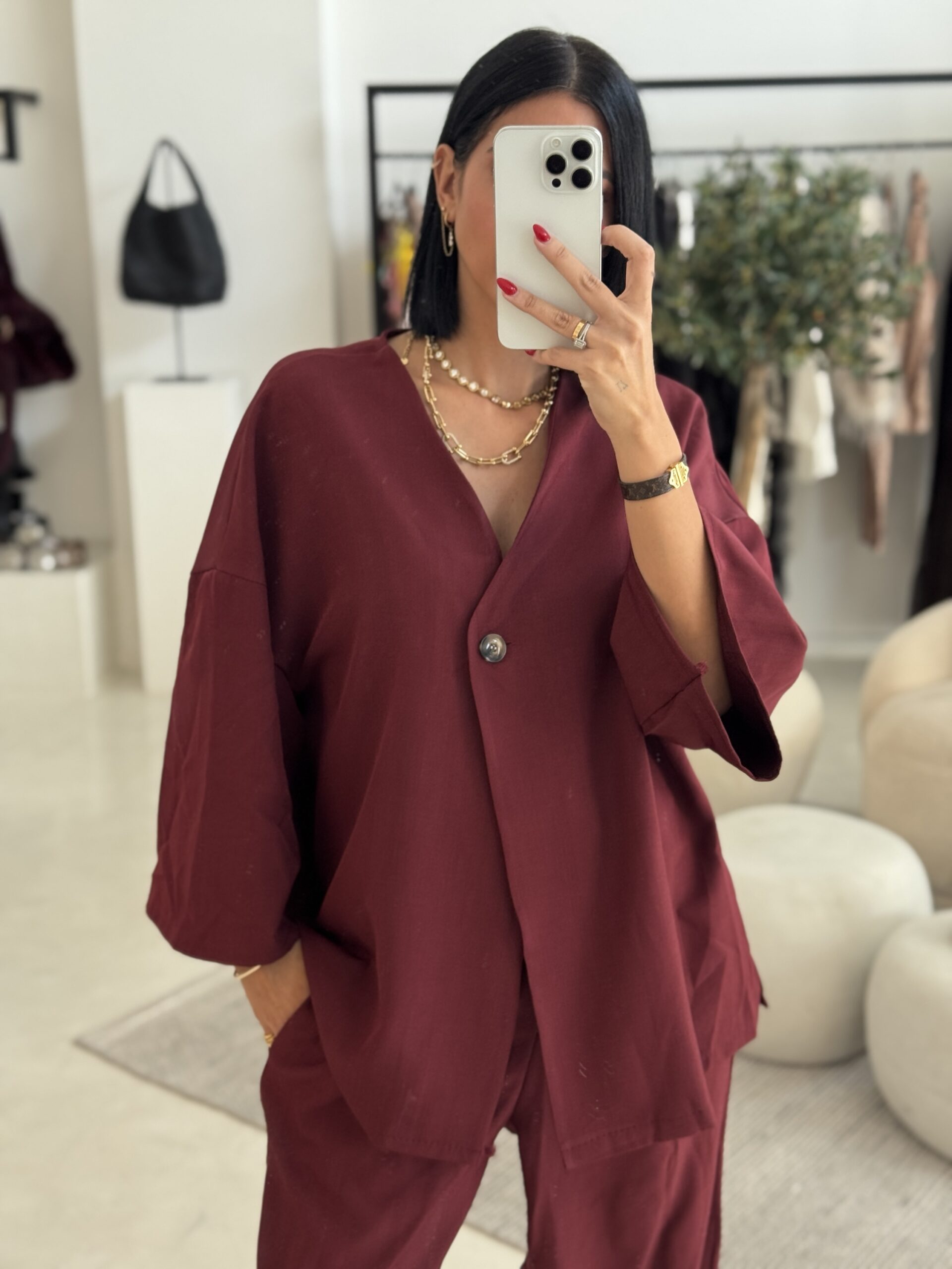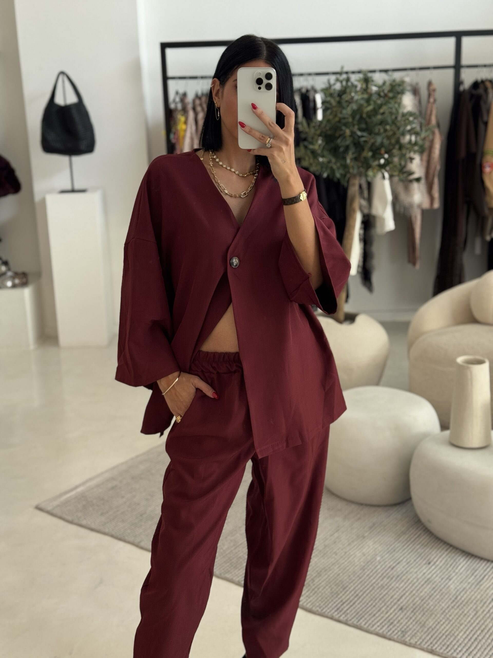 ΤΟΠ ΠΟΥ ΚΛΕΙΝΕΙ ΜΕ ΚΟΥΜΠΙ ΚΑΙ ΠΑΝΤΕΛΟΝΙ ΜΕ ΛΑΣΤΙΧΟ ΣΤΗΝ ΜΕΣΗ. POLYESTER ELASTAN. ΣΤΗΘΟΣ ΕΩΣ 130CM, ΜΕΣΗ ΕΩΣ 113CM, ΠΕΡΙΦΕΡΕΙΑ ΕΩΣ 138CM.
