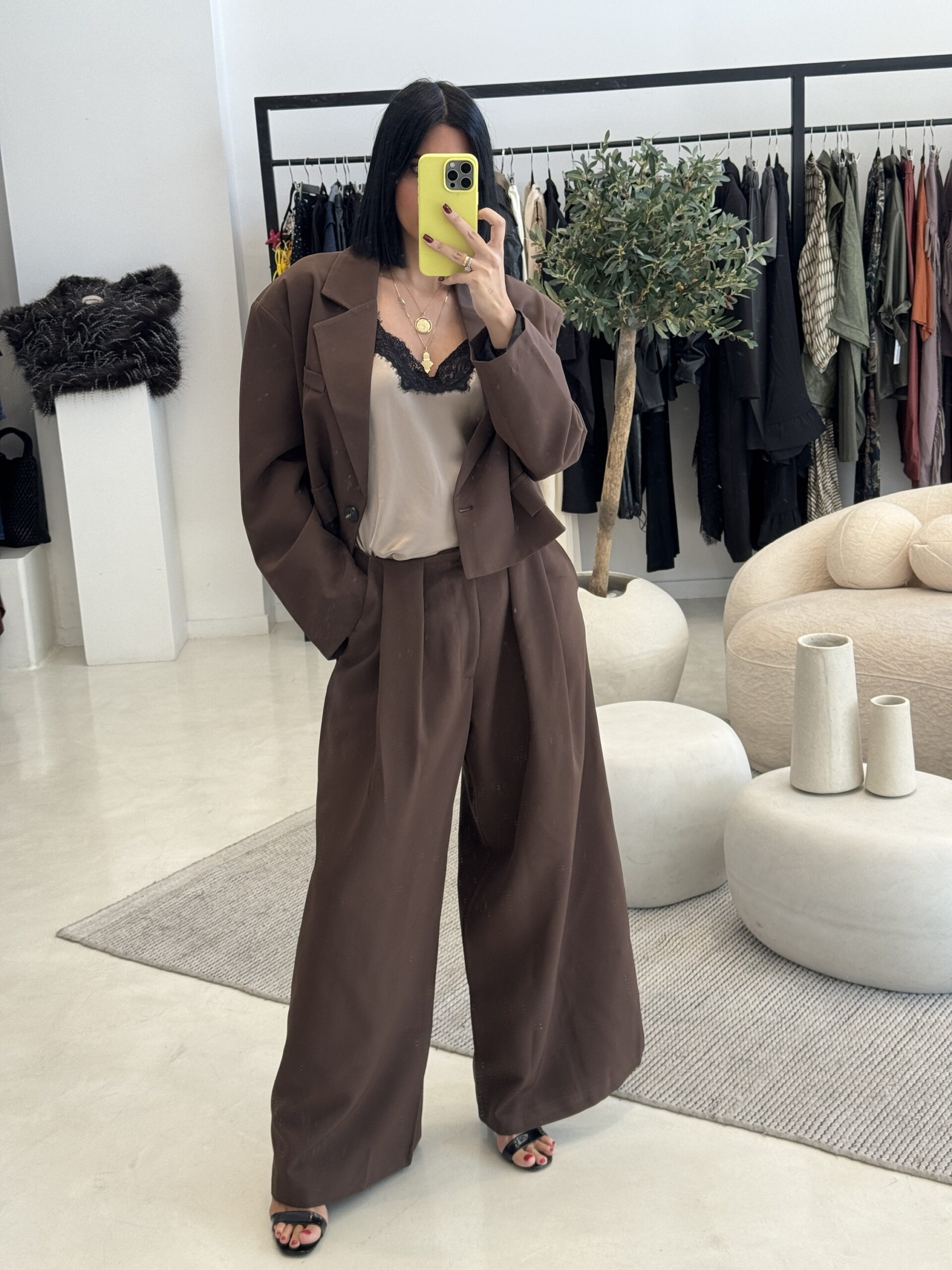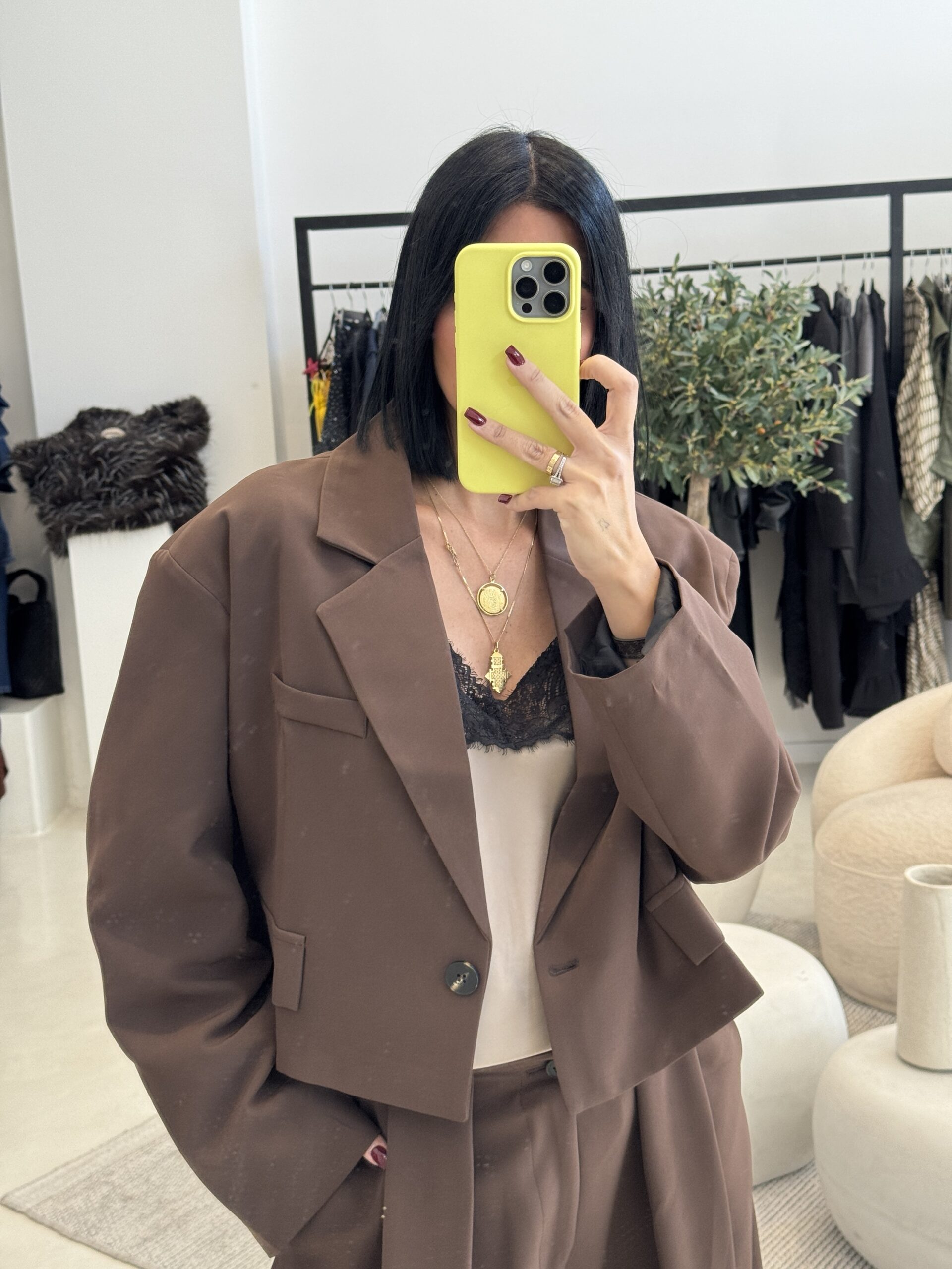 ΚΟΣΤΟΥΜΙ ΜΕ CROPPED ΣΑΚΑΚΙ ΚΑΙ ΠΑΝΤΕΛΟΝΑ ΨΗΛΟΜΕΣΗ. POLYESTER,ELASTAN.