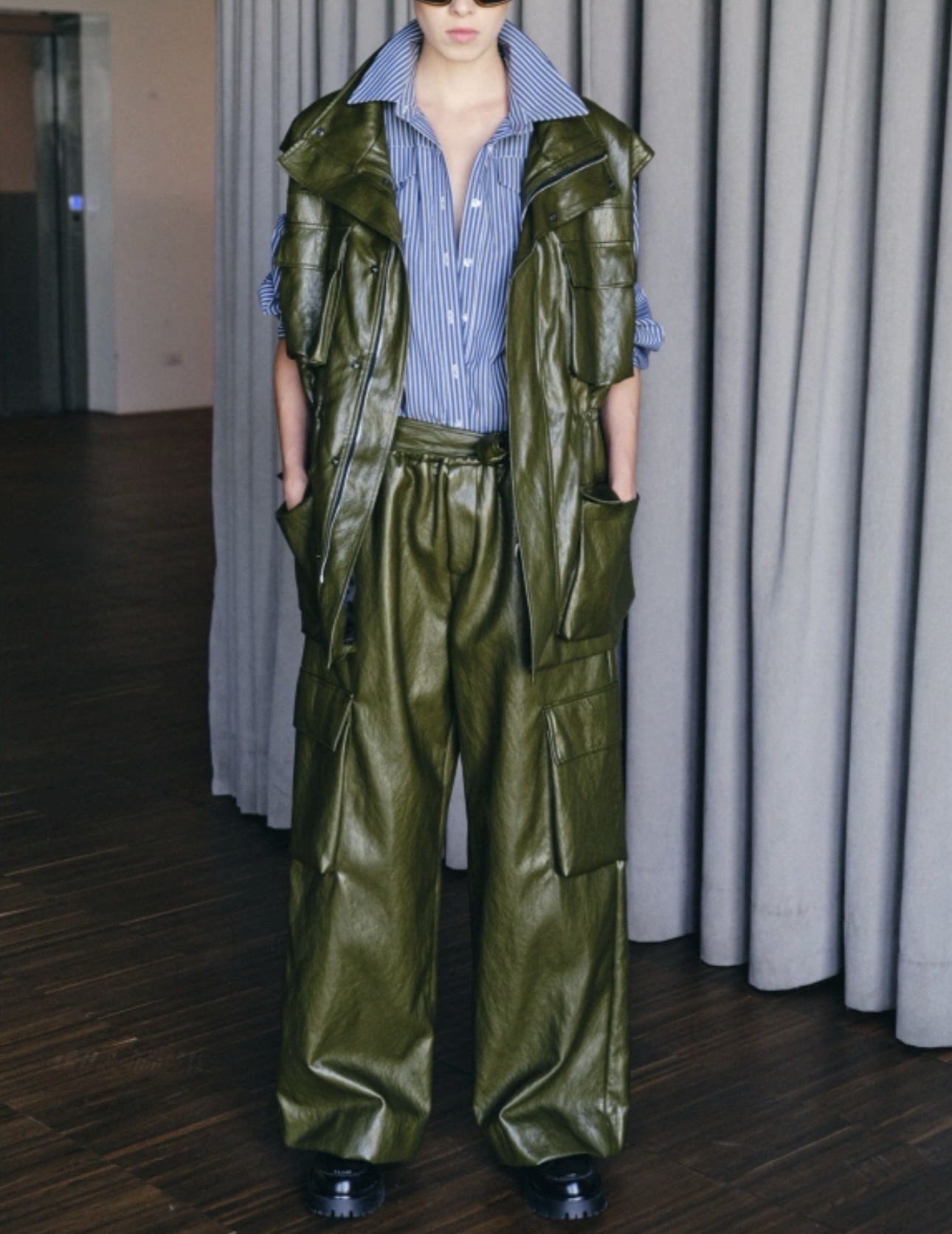ΓΙΛΕΚΟ ΒΙΝΥΛ ΣΕ ΟVERSIZED ΓΡΑΜΜΗ, THΣ ΕΤΑΙΡΕΙΑΣ LUMINA. KAΛΥΠΤΕΙ ΣΤΗΘΟΣ ΕΩΣ 120CM. POLYITHERANE, VISCOSE, COTTON.