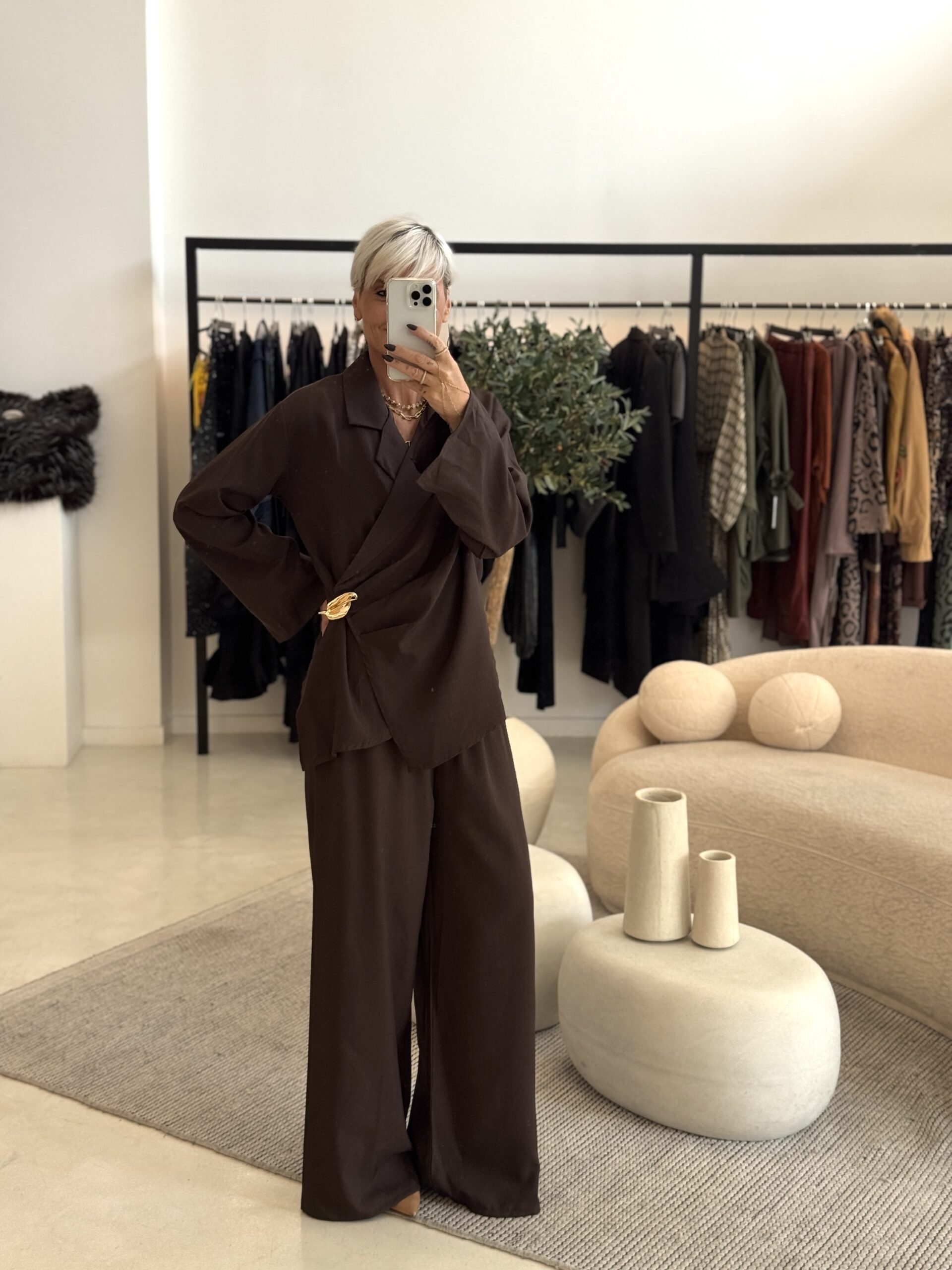 ΠΟΥΚΑΜΙΣΟ ΑΣΥΜΜΕΤΡΟ ΚΡΟΥΑΖΕ ΜΕ ΛΕΠΤΟMΕΡΕΙΑ ΧΡΥΣΗ ΚΑΡΦΙΤΣΑ. ΠΑΝΤΕΛΟΝΑ ΜΕ ΛΑΣΤΙΧΟ ΣΤΗΝ ΜΕΣΗ. ΣΤΗΘΟΣ ΕΩΣ 120CM. ΜΕΣΗ ΕΩΣ 110CM , ΠΕΡΙΦΕΡΕΙΑ ΕΩΣ 140CM.