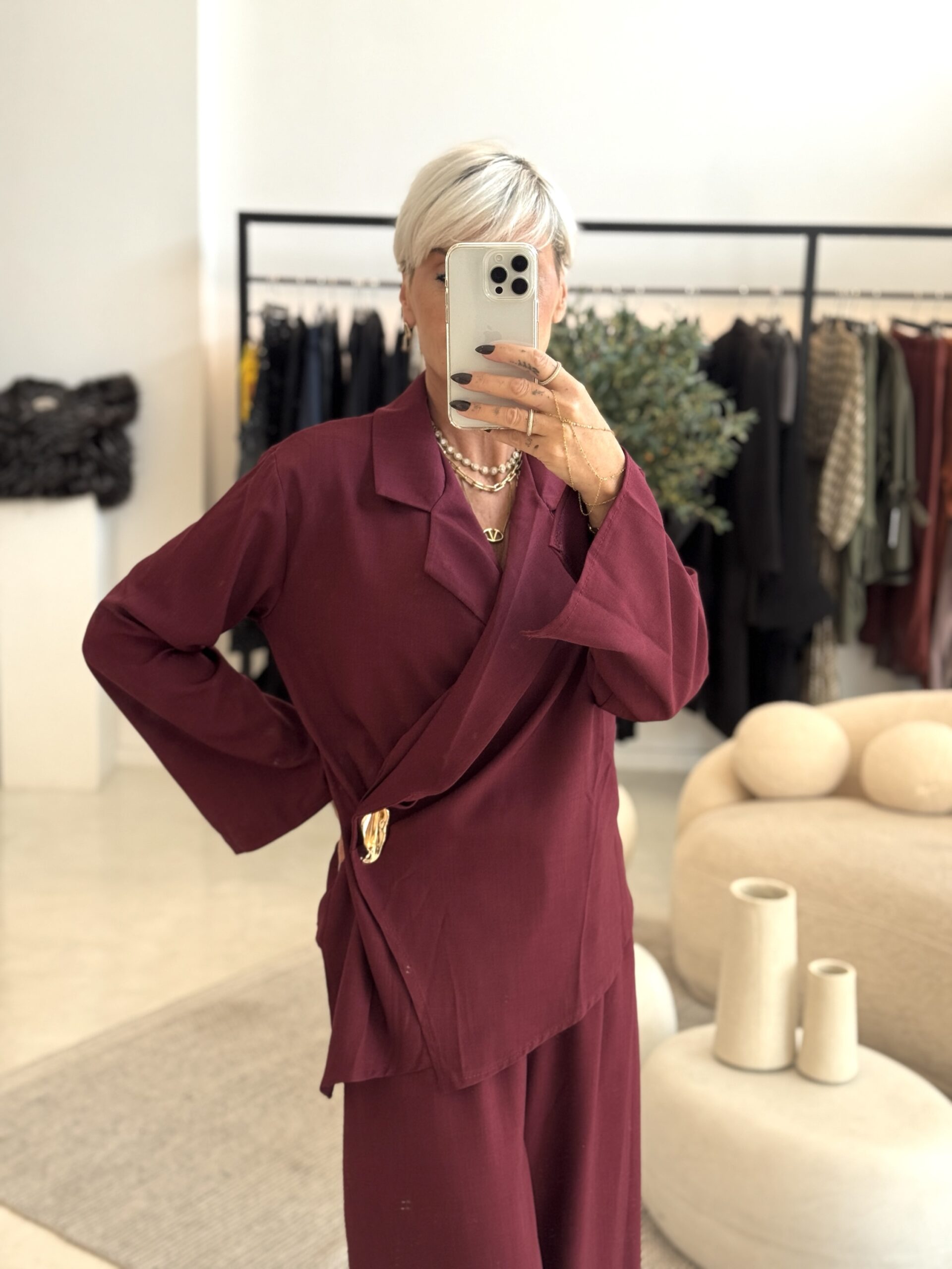 ΠΟΥΚΑΜΙΣΟ ΑΣΥΜΜΕΤΡΟ ΚΡΟΥΑΖΕ ΜΕ ΛΕΠΤΟMΕΡΕΙΑ ΧΡΥΣΗ ΚΑΡΦΙΤΣΑ. ΠΑΝΤΕΛΟΝΑ ΜΕ ΛΑΣΤΙΧΟ ΣΤΗΝ ΜΕΣΗ. ΣΤΗΘΟΣ ΕΩΣ 120CM. ΜΕΣΗ ΕΩΣ 110CM , ΠΕΡΙΦΕΡΕΙΑ ΕΩΣ 140CM.