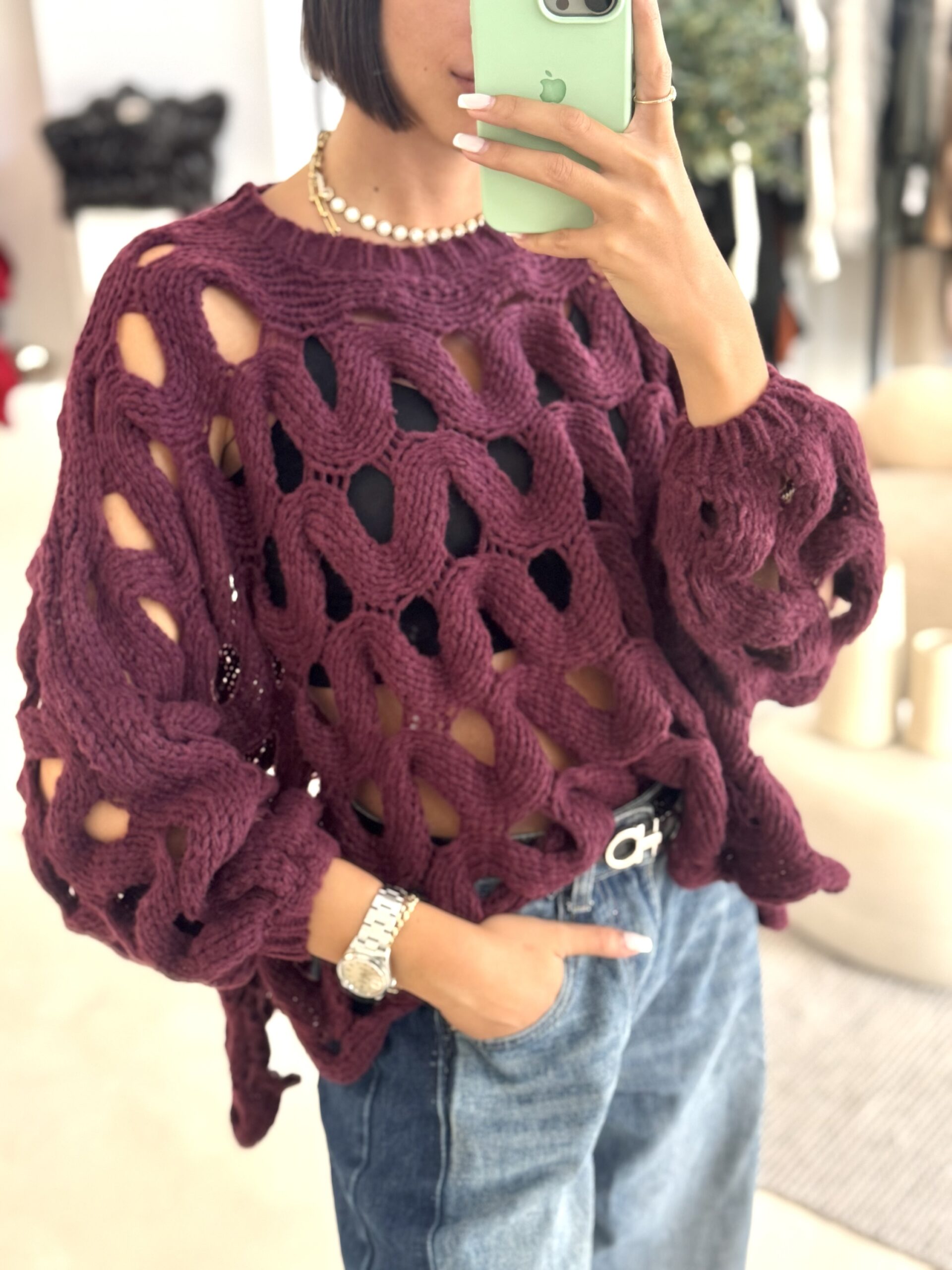 ΠΛΕΚΤΟ ΔΙΑΤΡΗΤΟ OVERSIZED,ΚΑΛΥΠΤΕΙ ΣΤΗΘΟΣ ΕΩΣ 170. VISCOSE,POLYESTER.