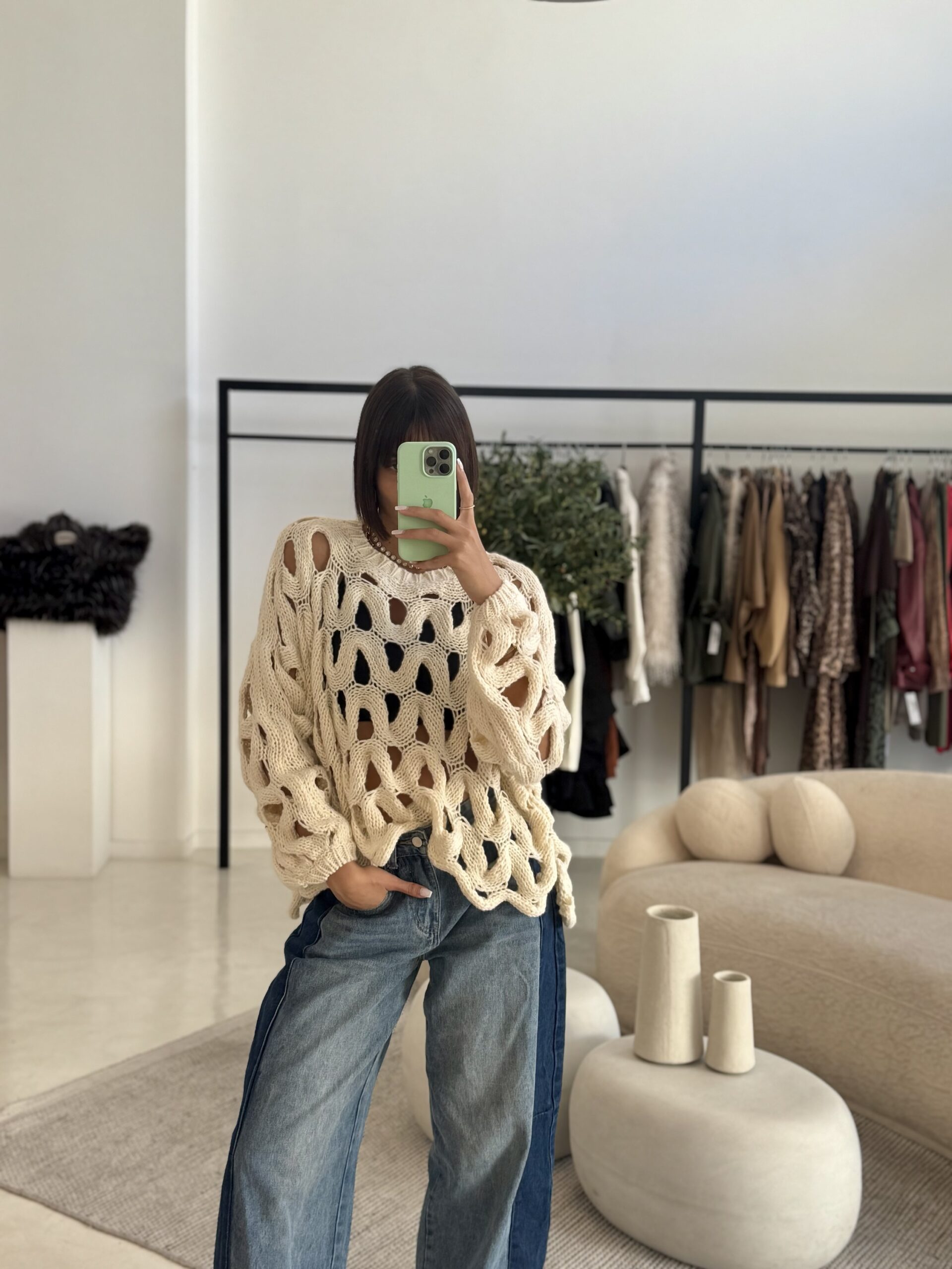 ΠΛΕΚΤΟ ΔΙΑΤΡΗΤΟ OVERSIZED,ΚΑΛΥΠΤΕΙ ΣΤΗΘΟΣ ΕΩΣ 170. VISCOSE,POLYESTER.