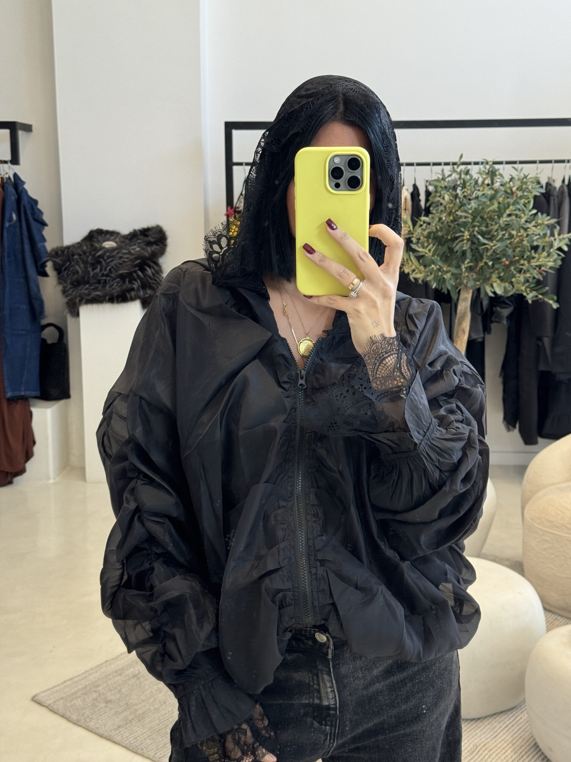 ΕΛΑΦΡΥ bOMBER ΜΕ ΔΑΝΤΕΛΑ ΓΙΑ ΛΕΠΤΟΜΕΡΕΙΑ ΚΑΙ ΚΟΥΚΟΥΛΑ. ΚΑΛΥΠΤΕΙ ΕΩΣ 140CM. SILK 80%, NYLON.