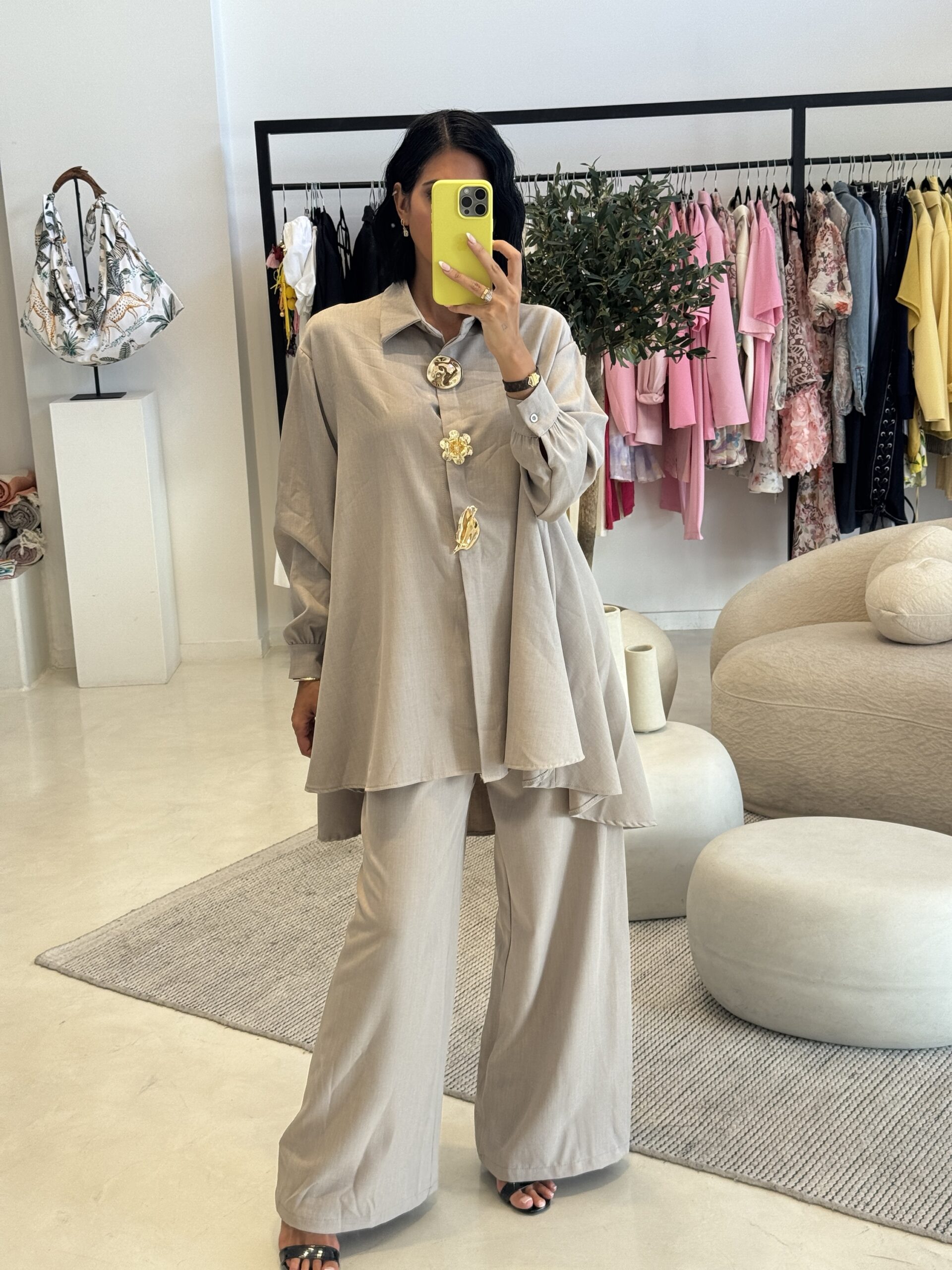 ΠΟΥΚΑΜΙΣΟ ΑΣΥΜΜΕΤΡΟ ΜΕ ΛΕΠΤΟΜΕΡΕΙΕΣ ΧΡΥΣΕΣ ΚΑΡΦΙΤΣΕΣ. ΠΑΝΤΕΛΟΝΑ ΜΕ ΛΑΣΤΙΧΟ ΣΤΗΝ ΜΕΣΗ. ΣΤΗΘΟΣ ΕΩΣ 120ΕΚ. ΜΕΣΗ ΕΩΣ 110ΕΚ , ΠΕΡΙΦΕΡΕΙΑ ΕΩΣ 140ΕΚ