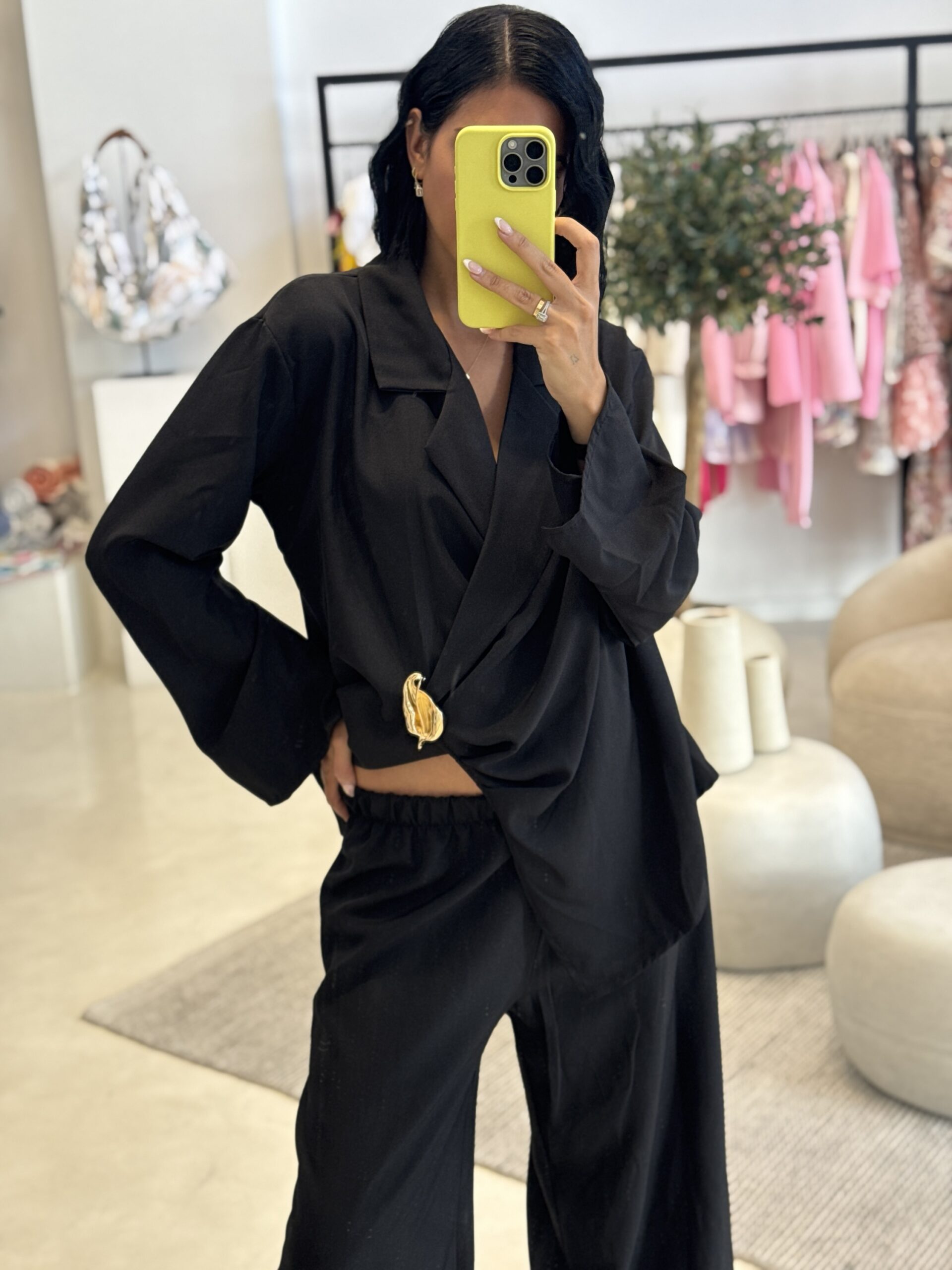 ΠΟΥΚΑΜΙΣΟ ΑΣΥΜΜΕΤΡΟ ΚΡΟΥΑΖΕ ΜΕ ΛΕΠΤΟMΕΡΕΙΑ ΧΡΥΣΗ ΚΑΡΦΙΤΣΑ. ΠΑΝΤΕΛΟΝΑ ΜΕ ΛΑΣΤΙΧΟ ΣΤΗΝ ΜΕΣΗ. ΣΤΗΘΟΣ ΕΩΣ 120CM. ΜΕΣΗ ΕΩΣ 110CM , ΠΕΡΙΦΕΡΕΙΑ ΕΩΣ 140CM.