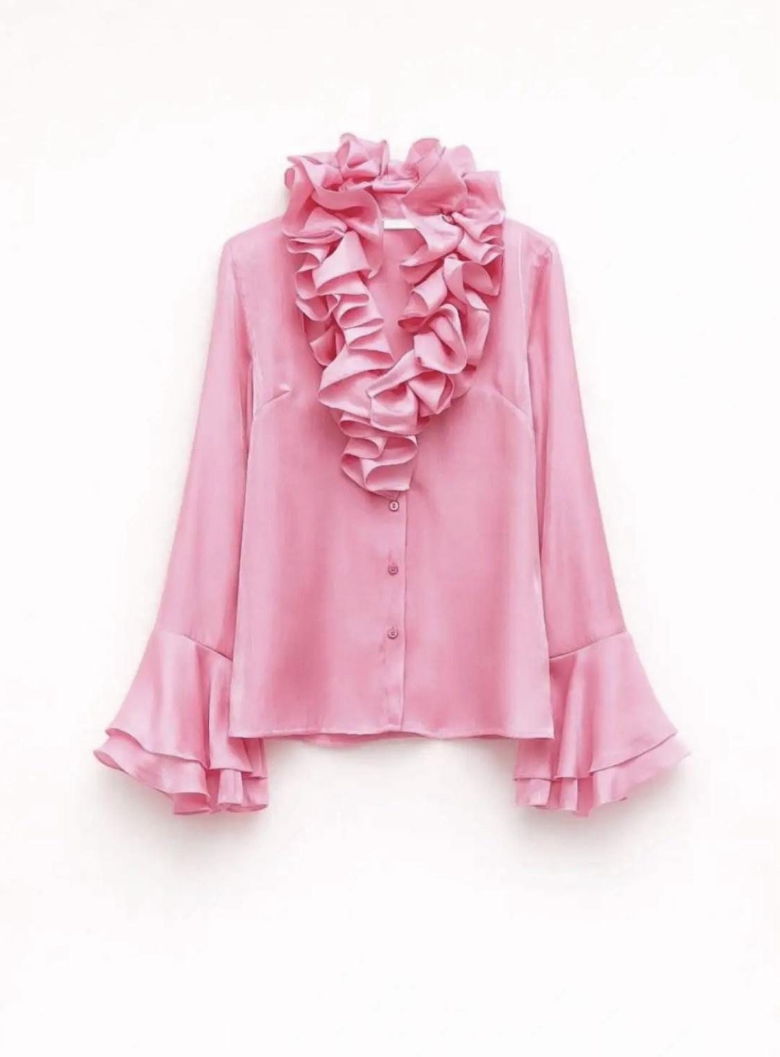 ΑΕΡΙΝΗ ΗΜΙΔΙΑΦΑΝΗ ΜΠΛΟΥΖΑ ΜΕ ΕΝΤΥΠΩΣΙΑΚΟ ΒΟΛΑΝ ΜΠΡΟΣΤΑ ΚΑΙ ΣΤΑ ΜΑΝΙΚΙΑ.ΚΟΜΨΗ,ΘΗΛΥΚΗ ΚΑΙ ΙΔΑΝΙΚΗ ΓΙΑ DAY TO NIGHT ΕΜΦΑΝΙΣΕΙΣ. VISCOSE-POLYESTER.