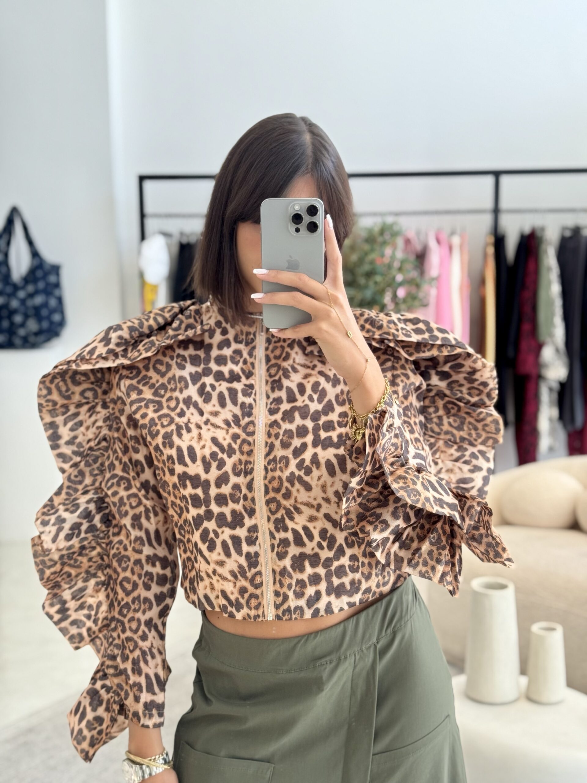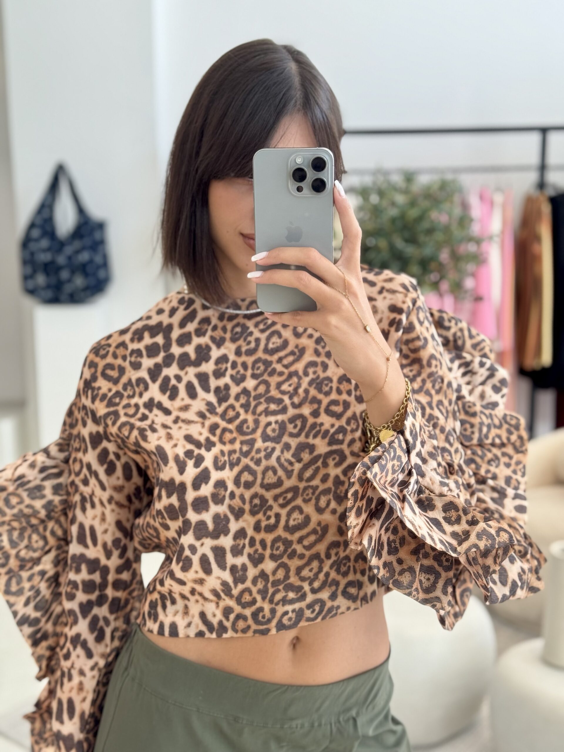 ΤΟΠ ΜΕ ΒΟΛΑΝ ΣΤΑ ΜΑΝΙΚΙΑ ΚΑΙ ΦΕΡΜΟΥΑΡ ΚΑΛΥΠΤΕΙ ΣΤΗΘΟΣ ΕΩΣ 104CM POLYESTER VISCOSE
